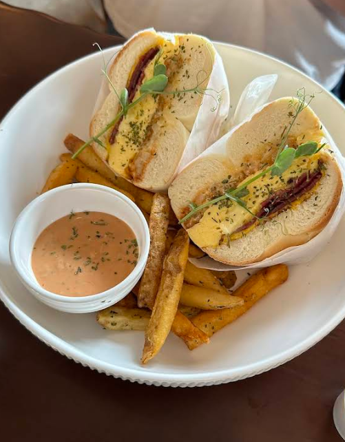 - Cheese & Ham Bagel + Latte: Eat, chat, or sit by the window enjoying the street view.