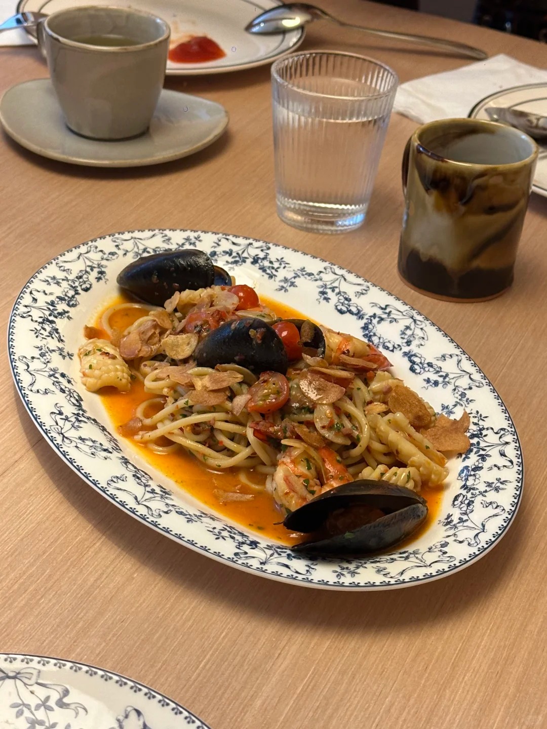Stepping into Sun & Moon the space immediately feels alive yet comforting. Daylight pours through the expansive windows, highlighting natural wood accents and soft furnishings, creating a relaxed vibe perfect for lingering over brunch or coffee. By evening, subtle lighting casts a warm glow over the room, turning it into an inviting, intimate bistro where textures, shadows, and gentle music craft a different, moodier charm. Every corner feels considered—sunlight by day, golden warmth by night—bringing the restaurant’s name to life.