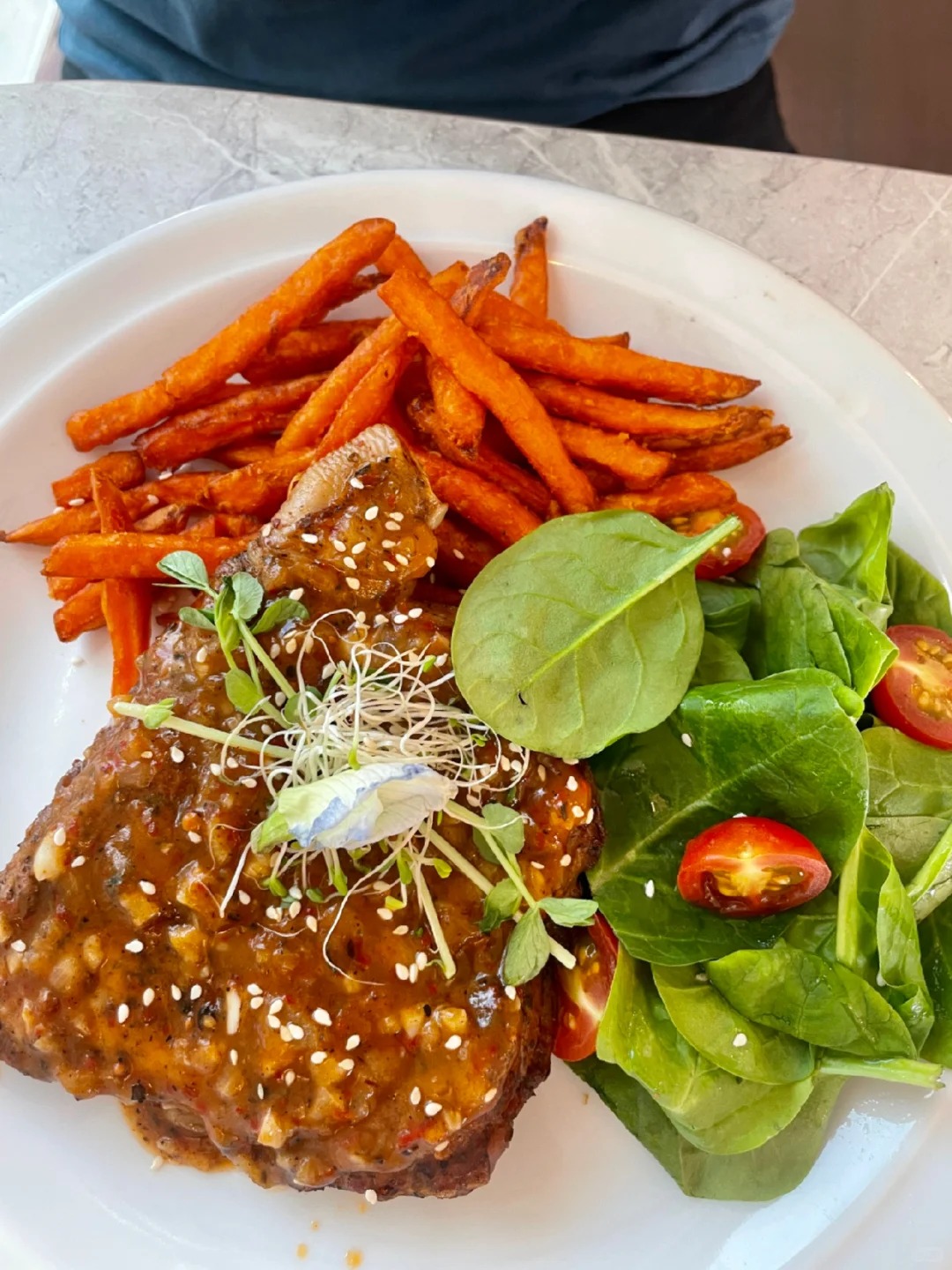 BlackBixon Cafe offers spacious indoor seating as well as a breezy outdoor area where visitors relax easily. To start, the smoked duck aglio olio delivers gentle heat and smoky depth while the noodles stay springy. In addition, their pan-seared salmon remains moist inside with a crisp outer layer that adds texture. Meanwhile, the Croizza combines buttery croissant dough with pizza-style toppings to create a fun savoury treat. On a warm afternoon, their matcha passionfruit drink brings a refreshing balance that rounds off the meal beautifully.